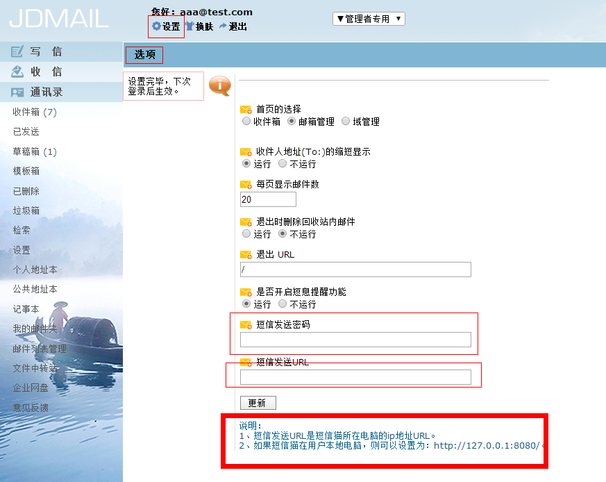 系统设置这块可任选网关和短信硬件方式进行邮件短信的发送。