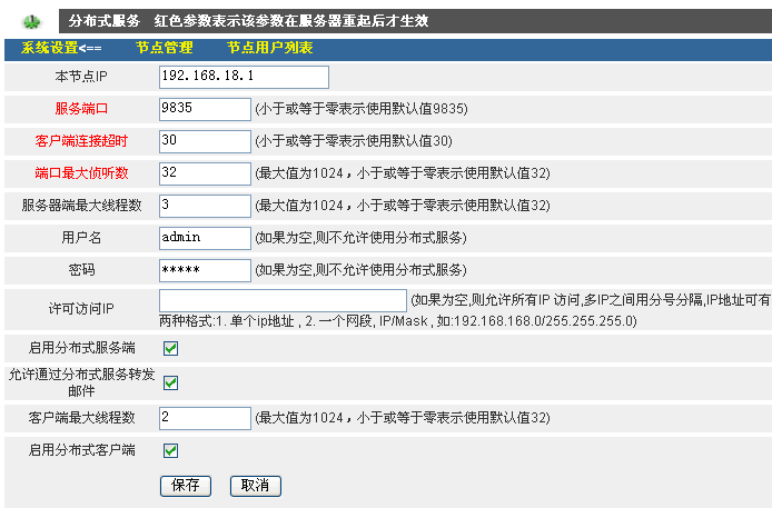 通过 系统设置-》分布式服务 进入系统的分布式服务设置,如图: