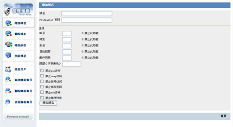 主要权限分三级管理,域管理权限可以分配给域管理员使用。同时自动提供流量统计报告,收发邮件分用户数量统计等。