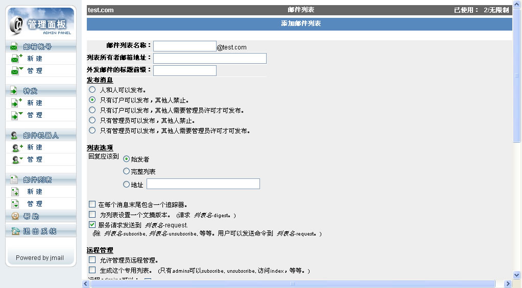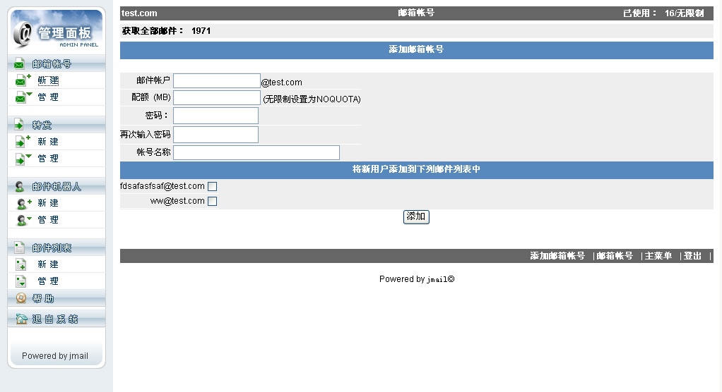 向系统中添加邮件列表 |