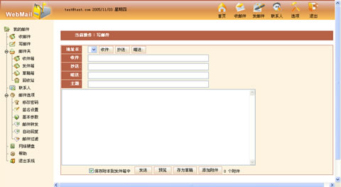 可以根据主题/发信人/附件过滤,过滤后的邮件可存放在指定文件夹中实现自动分拣,提供邮件拒收列表 |