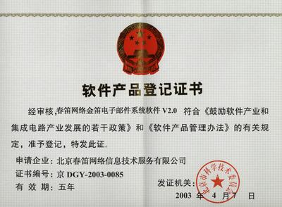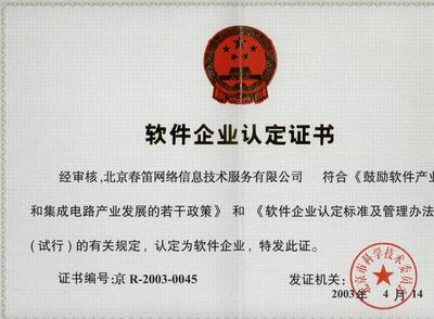 软件企业认定证书号:京R-2003-0045