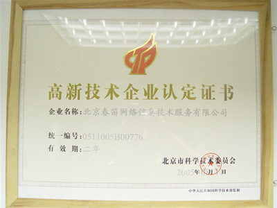 高新技术企业证书号:京高科字0511005B00776号