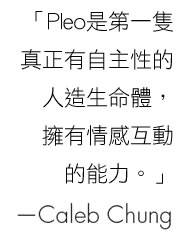 为什么Pleo能引起世界的注意呢?因为Pleo是一只具有生命特征的电子宠物,它能透过内建的感应器,可以与环境互动,也具备“学习”的能力,能通过与主人的互动学到更多东西。有趣的是,这只电子宠物还有喜怒哀乐等拟人化的情绪,能随“生活”变化建立独特个性,它会表现出高兴、伤心、生气、害怕等情绪,已不只是一般的“机械宠物”,而是有“生命”的个体。