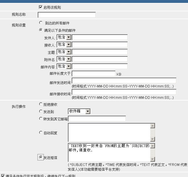 技巧一、新邮件到达提醒可以设置提醒条件。jdmail通过过滤规则,只有满足条件的邮件,才发短信提醒,避免短信骚扰。
