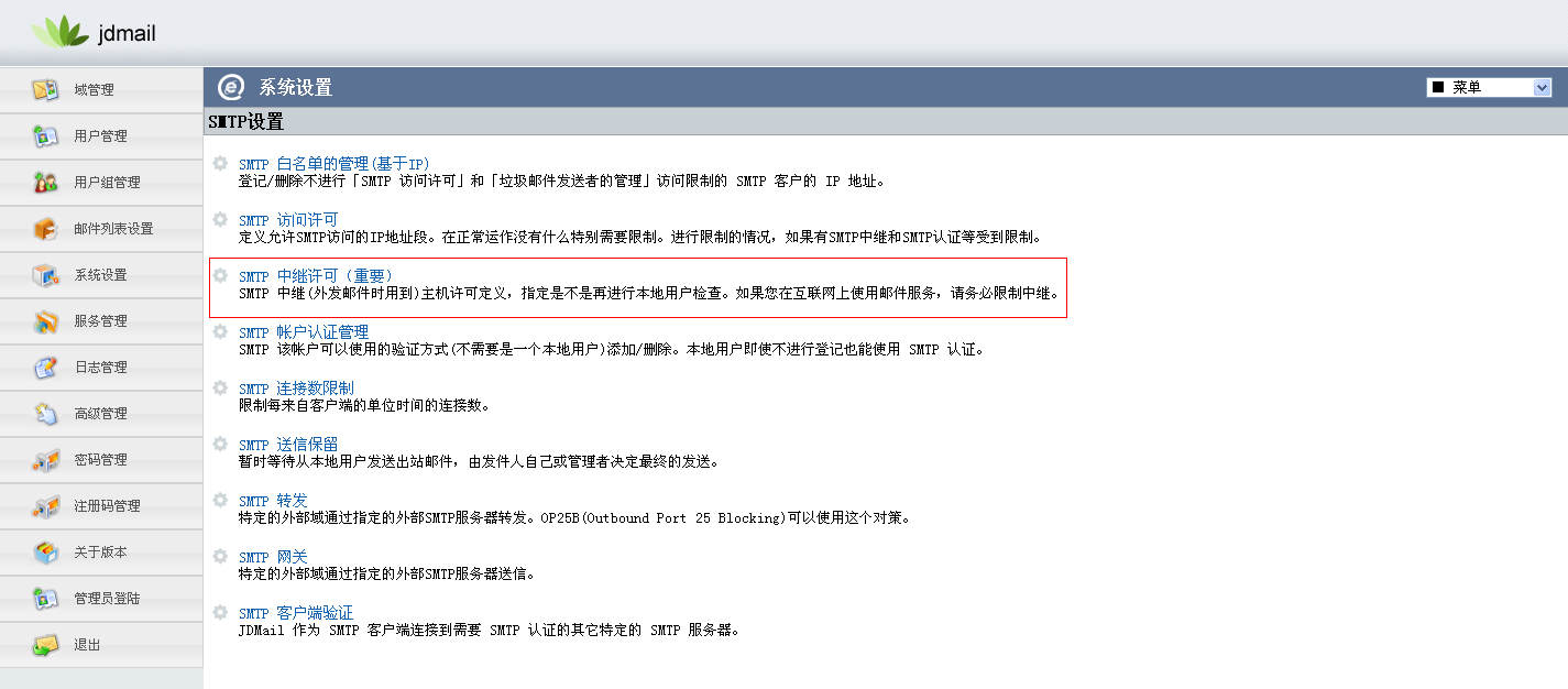 2.邮件系统设置了允许中转功能